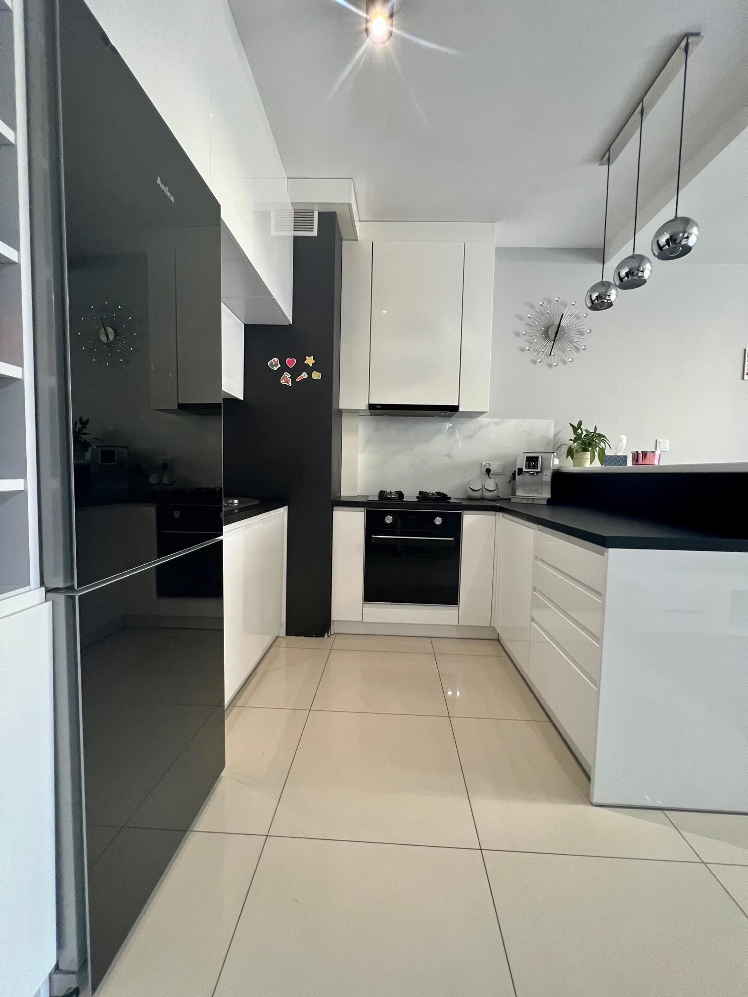Kuchnia wykończona w zabudowie stałej, wyposażona w sprzęt AGD.