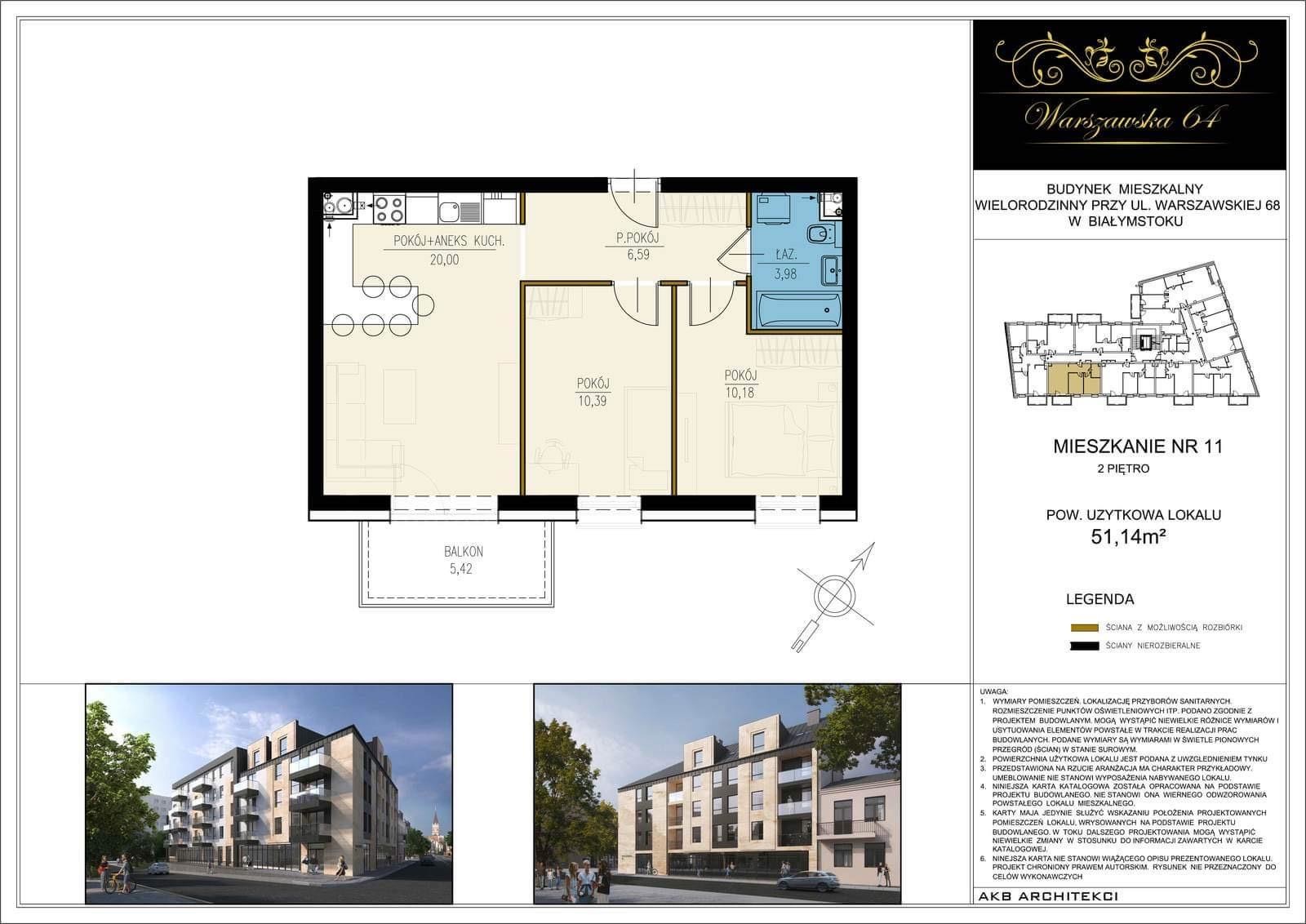 Mieszkanie powierzchni 51.1m2 składa się z pokoju dziennego z aneksem kuchennym, z wyjściem na balkon o pow 5.40m2. Dwóch niezależnych sypialni. łazienki i przedpokoju.