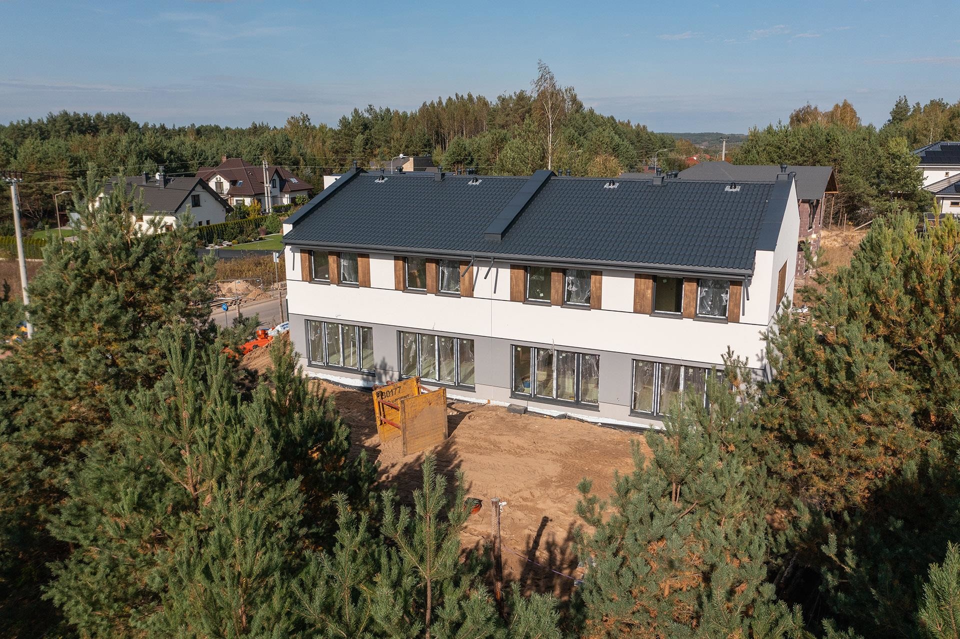 Oferowane nowoczesne mieszkania w szeregówce mają minimalistyczną elewację i solidną architekturę. Domy są energooszczędne i generują niskie koszty utrzymania.