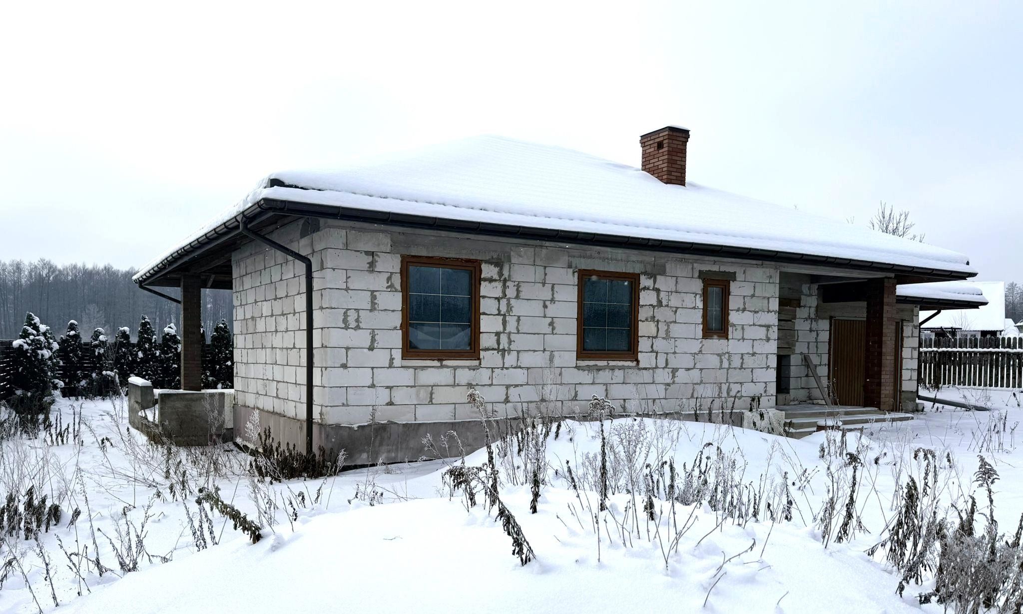 Dom oferowany jest w stanie surowym zamkniętym. W domu wstawione zostały okna trzyszybowe ze szprosami, strych w pełni odeskowany z dociepleniem na stropie 30 cm wełny. Dach wykonany z blacho dachówki fińskiej firmy Rukki.