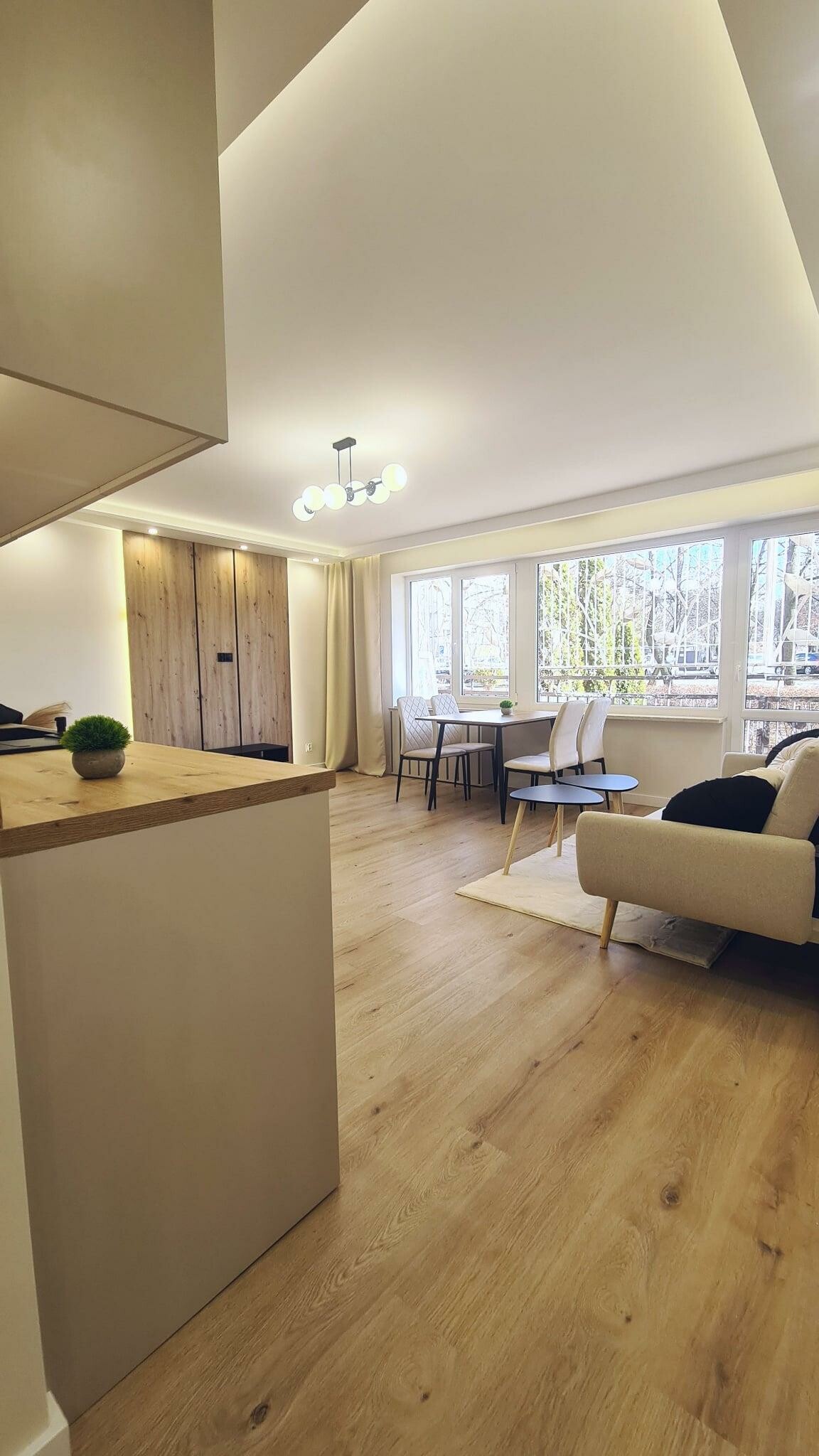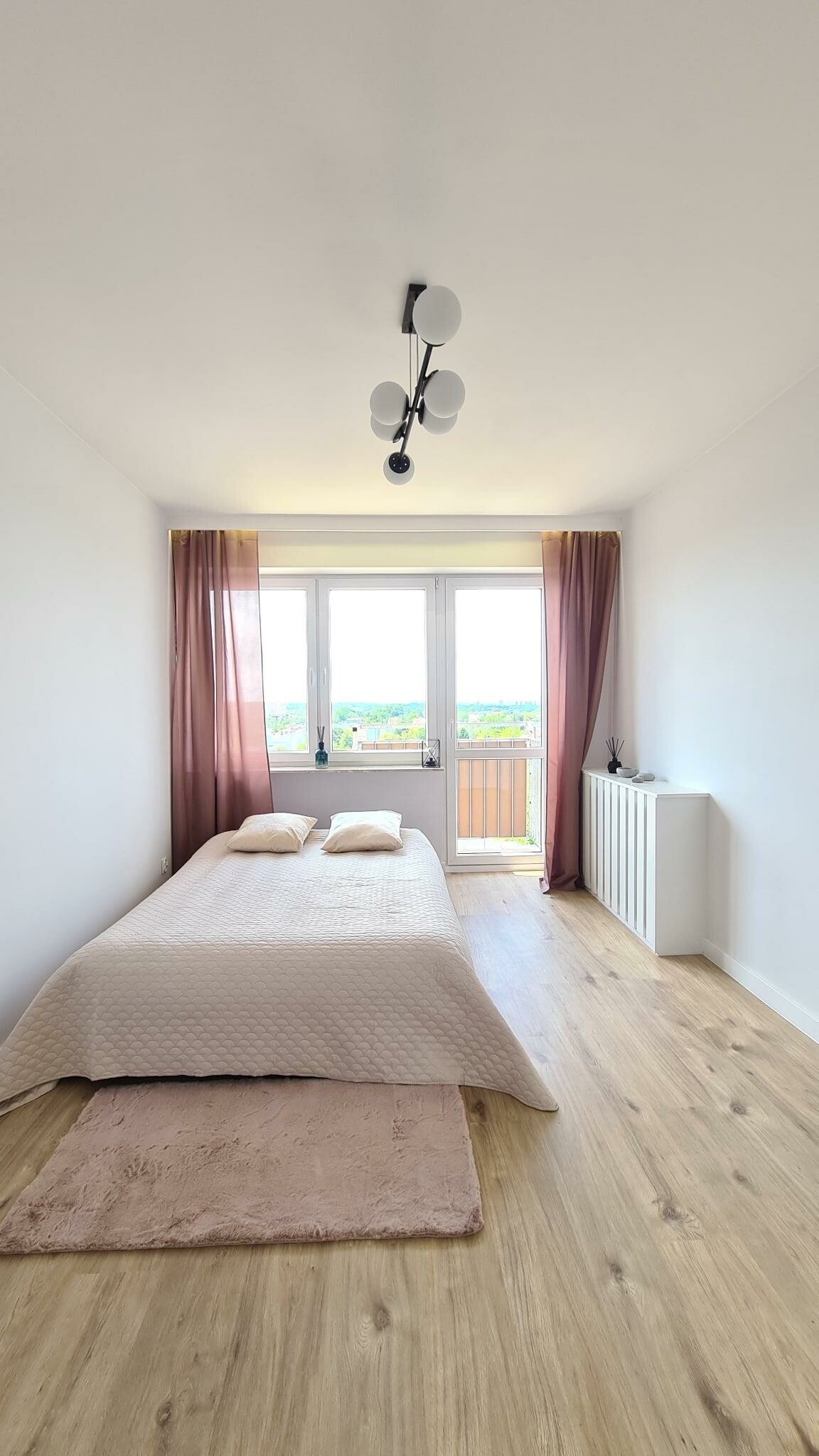 Mieszkanie jest jasne i dobrze doświetlone.