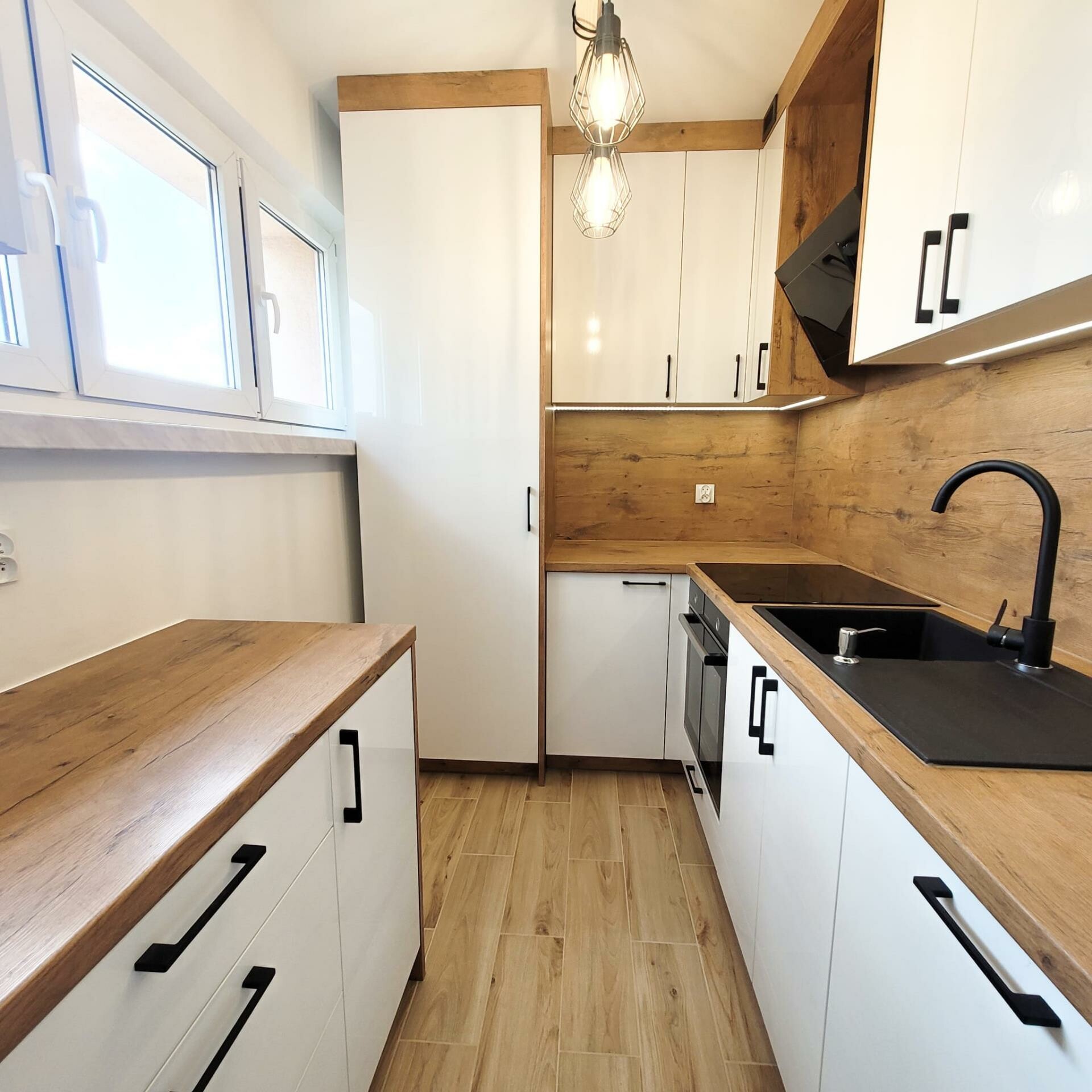Mieszkanie wyposażone jest w zabudowy stałe w kuchni wykonane przez stolarza. Kuchnia wyposażona w sprzęty AGD (wszystko na gwarancji).