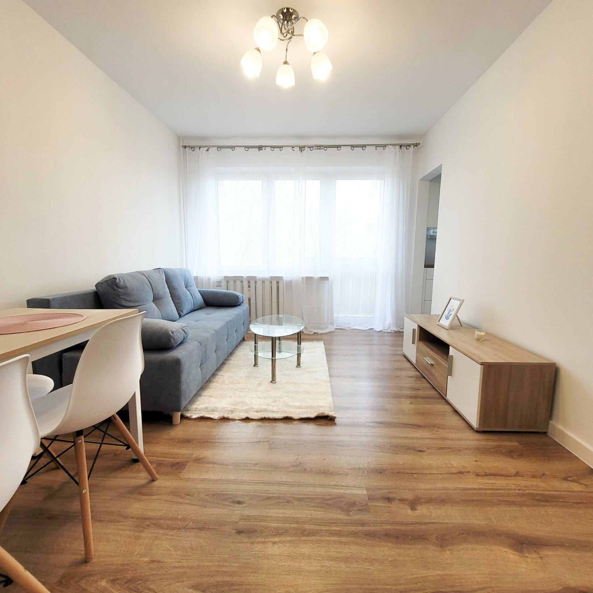 Mieszkanie jest jasne i dobrze doświetlone.