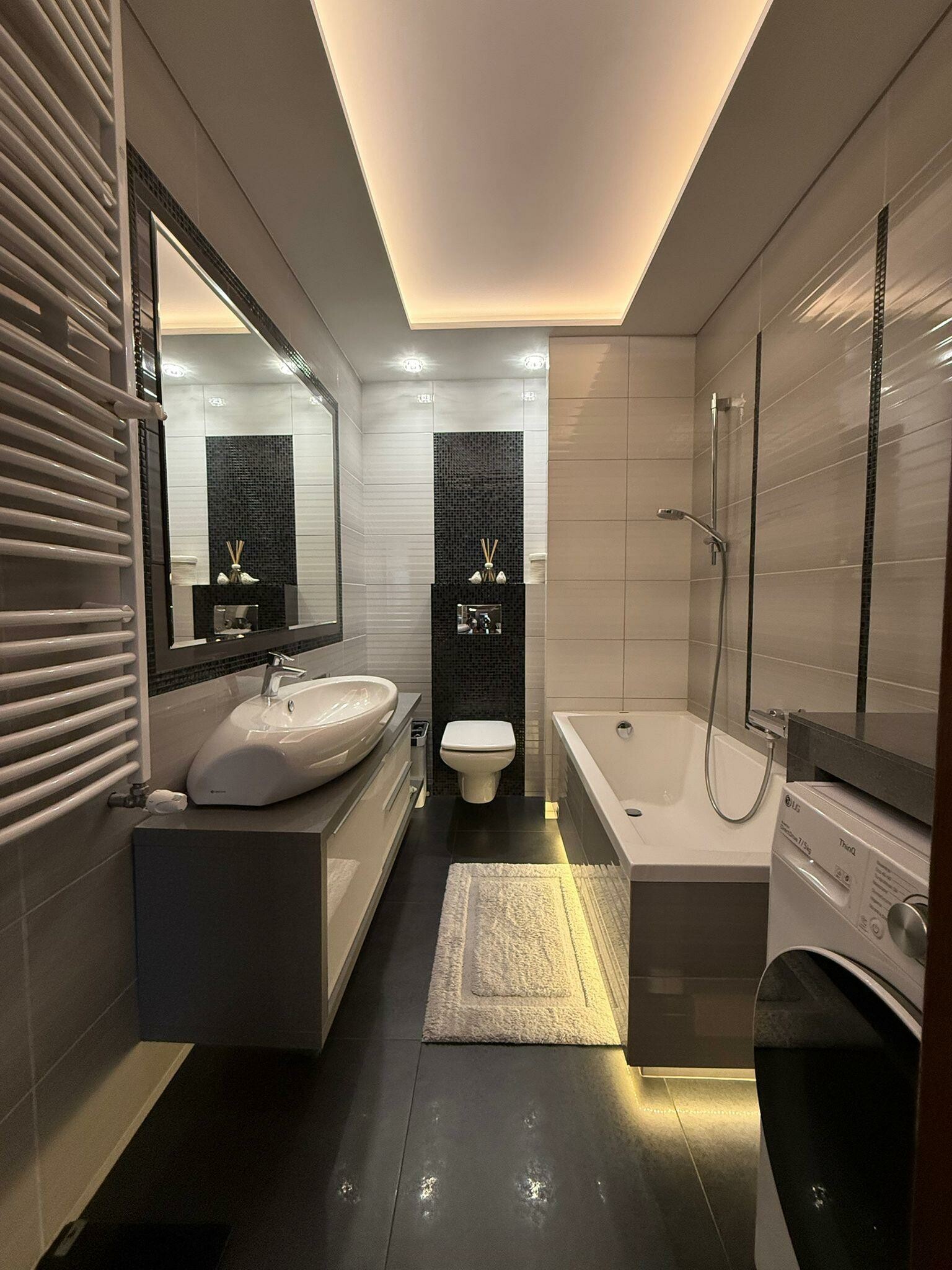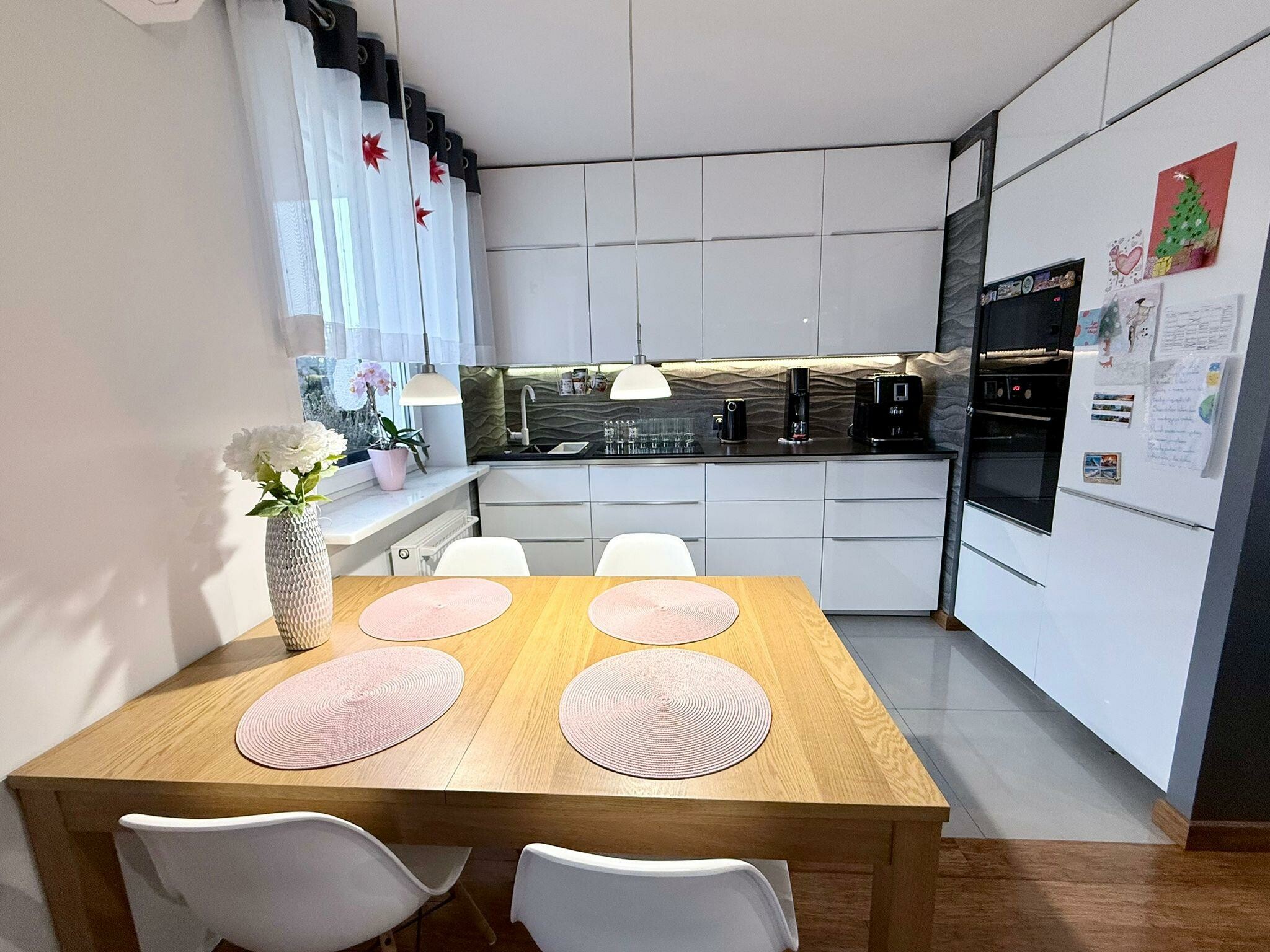 Lokal jest w pełni wyposażony i umeblowany w wysokim standardzie. Wszystkie elementy wyposażenia widoczne na zdjęciach w cenie. Mieszkanie posiada klimatyzację, zabudowy stałe oraz w pełni wyposażoną kuchnię.